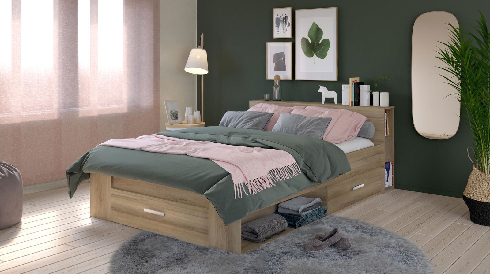 Κρεβάτι παιδικό “Ανατολή” Δρυς-ροζ