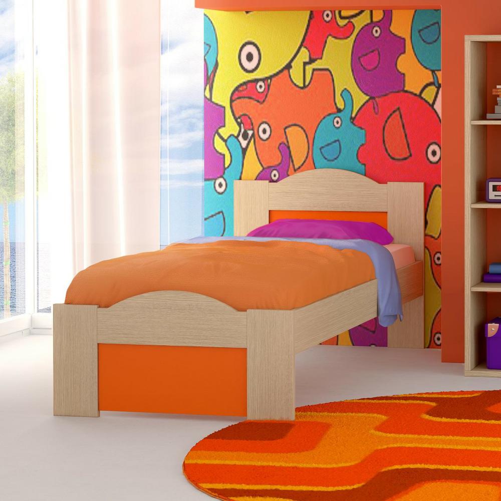 Κρεβάτι παιδικό “Κύμα” 110χ190 δρυς-πορτοκαλί (ΠΡΟΣΦΟΡΑ παλιό χρώμα, τελευταια τεμάχια)
