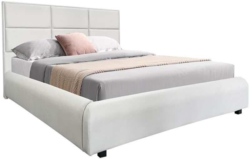Επενδυμένο κρεβάτι Lingo-140 x 200-Λευκό-Με μηχανισμό ανύψωσης