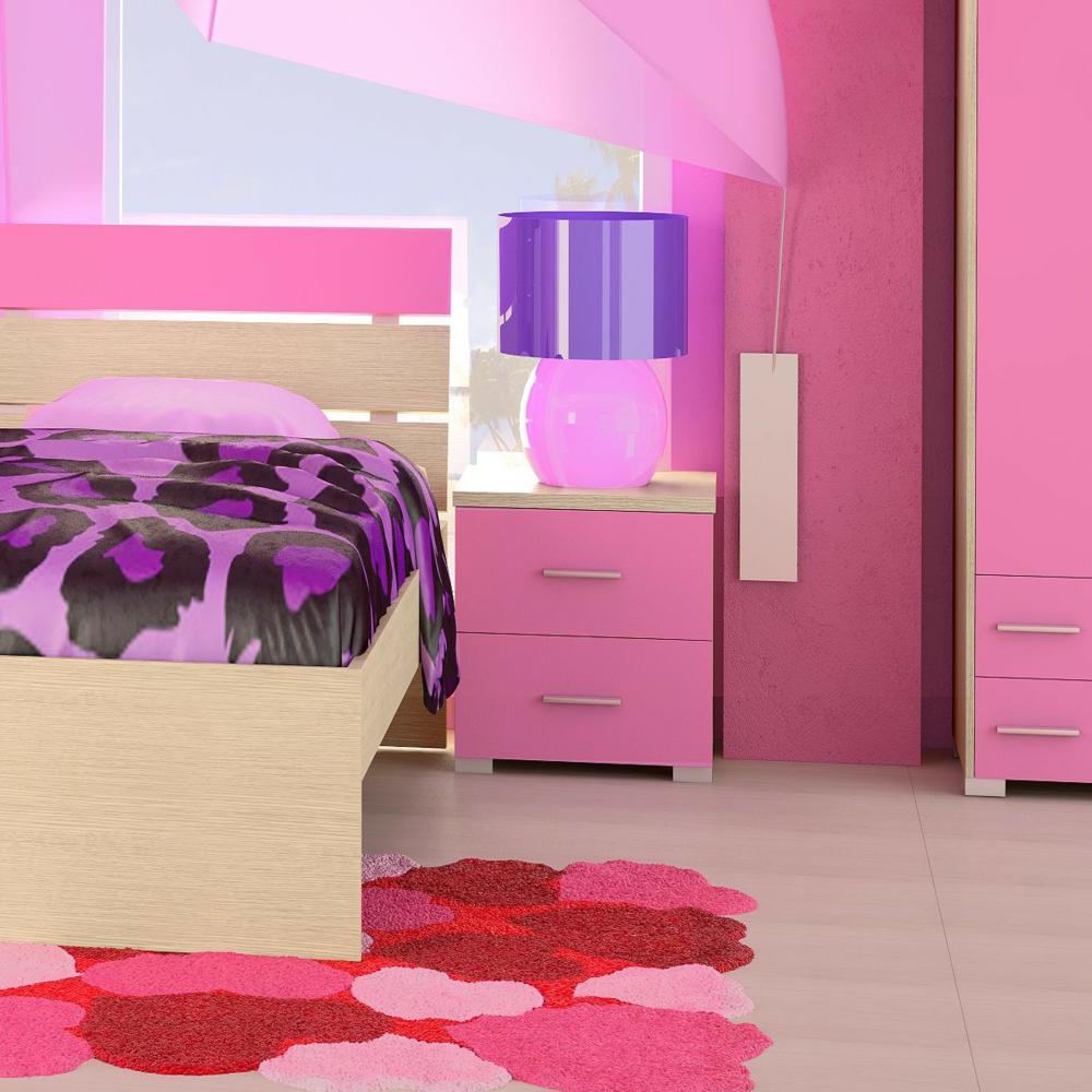 Κομοδίνο παιδικό με 2 συρτάρια δρυς-ροζ