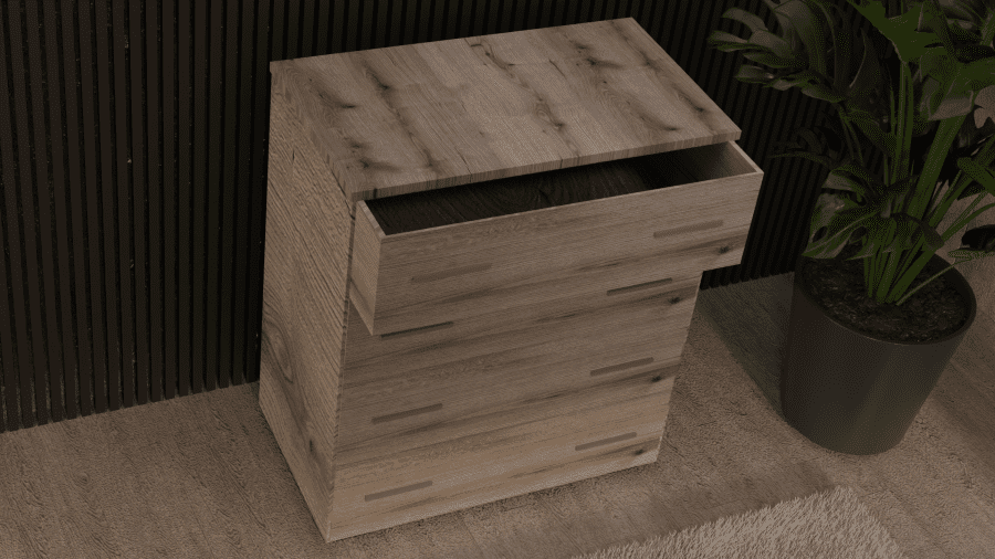 Συρταριέρα ελληνικής κατασκευής, με κομψό σχεδιασμό και πρακτική διάταξη. Διαθέτει 4 ευρύχωρα συρτάρια με μεταλλικά inox χερούλια, προσφέροντας άνεση και λειτουργικότητα. Κατασκευασμένη από μελαμίνη υψηλής ποιότητας και αντοχής, σε απόχρωση σταχτί, αποτελεί ιδανική επιλογή για την οργάνωση και τακτοποίηση του υπνοδωματίου σας.