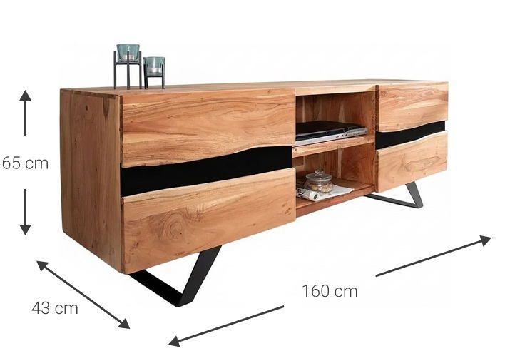 Το έπιπλο τηλεόρασης Dalma ξεχωρίζει για τη φυσική υφή του ξύλου ακακίας και τα έντονα νερά του, που χαρίζουν διακριτική κομψότητα στον χώρο. Ιδανικό για καθιστικά με ζεστό και αυθεντικό χαρακτήρα.