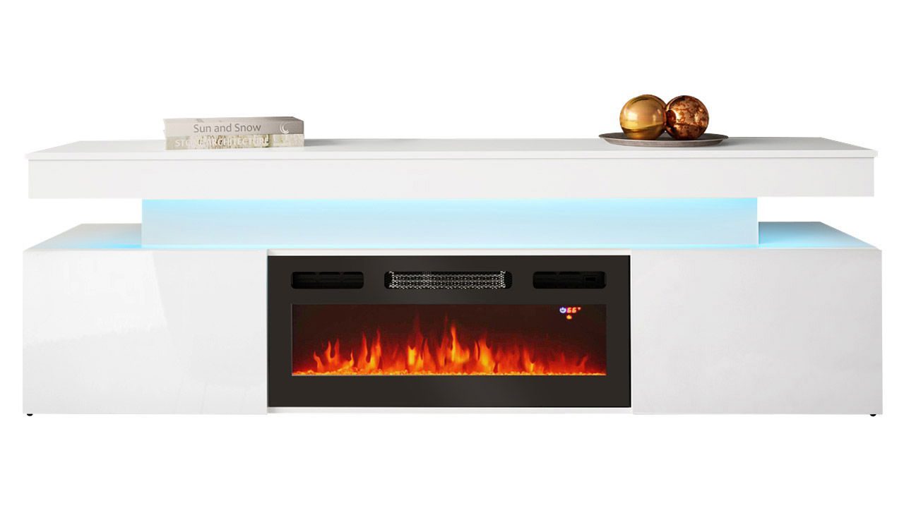 Το έπιπλο τηλεόρασης Glossa 2D 190 plus είναι κατάλληλο για κάθε μοντέρνο σαλόνι. Ο μπλέ LED φωτισμός του προσθέτει χρώμα και στύλ στην συνολική εικόνα. Τέλος η ηλεκτρική εστία προσφέρει μία ιδιαίτερη αίσθηση θαλπωρής
