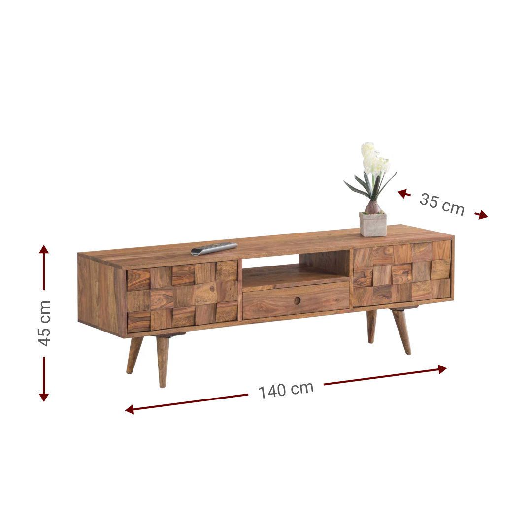 Βάση τηλεόρασης σε ρουστίκ αισθητική, ιδανική για ένα ζεστό και φιλόξενο καθιστικό.