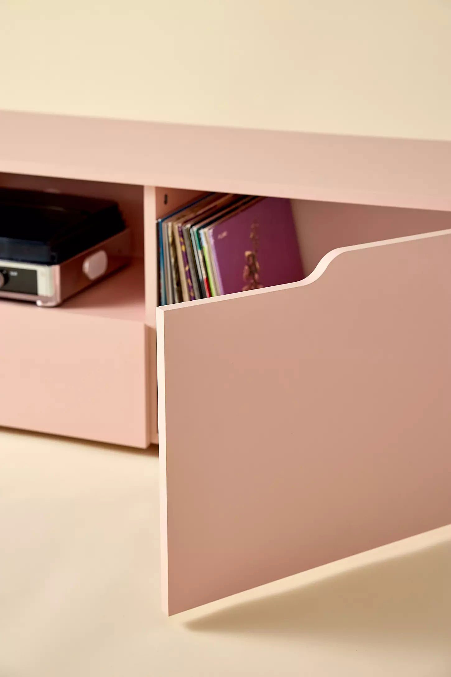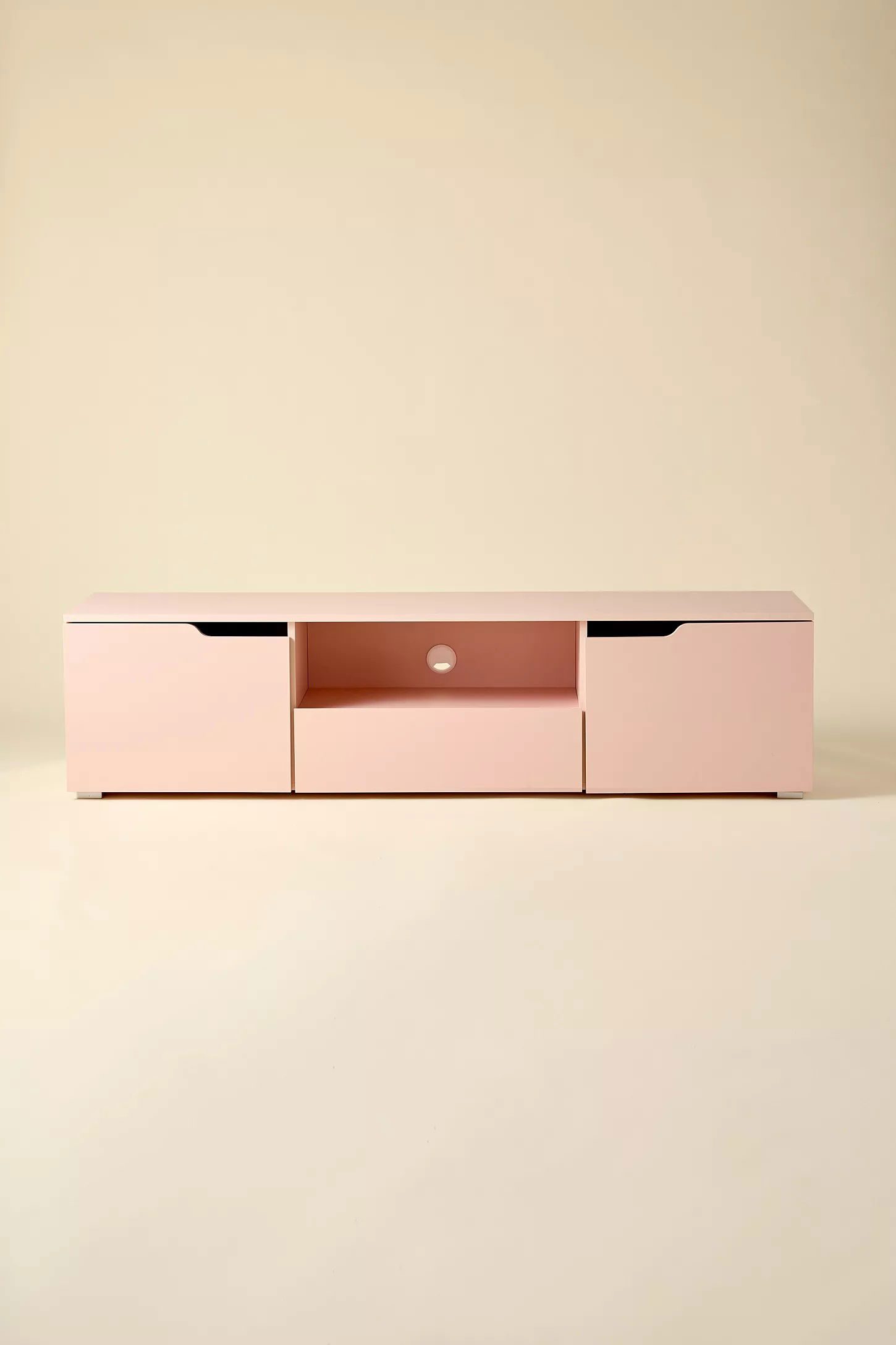 Αναβαθμίστε το σαλόνι σας με το έπιπλο τηλεόρασης Rosa. Αυτό το κομψό και λειτουργικό κομμάτι συνδυάζει έναν μινιμαλιστικό σχεδιασμό με ένα απαλό, ροζ φινίρισμα. Η ευρύχωρη επάνω επιφάνεια παρέχει άφθονο χώρο για την τηλεόρασή σας, ενώ τα δύο ντουλάπια και το ανοιχτό ράφι προσφέρουν άφθονο αποθηκευτικό χώρο για τις συσκευές πολυμέσων, τις κονσόλες παιχνιδιών και άλλα απαραίτητα.