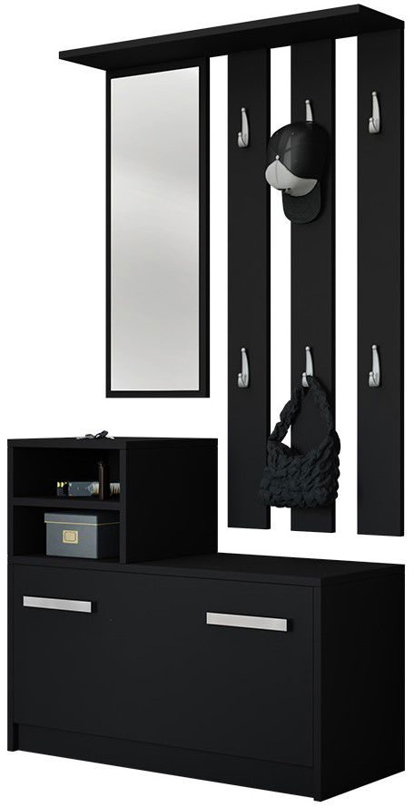 Το έπιπλο υποδοχής Kolom, μια πολυλειτουργική και έτοιμη λύση για το σπίτι σας. Αποτελείται από δύο μέρη χάρη στα οποία η προσαρμογή ύψους γίνεται ανάλογα τς προτιμήσεις σας. Ο μεγάλος καθρέπτης προσφέρει μια ολοκληρωμένη εικόνα, οι 6 κρεμάστρες αποτελούν εξαιρετική λύση για να κρεμάτε τα ρούχα καθώς και η παπουτσοθήκη διαθέτει χώρο για 8-9 ζευγάρια παπουτσιών.