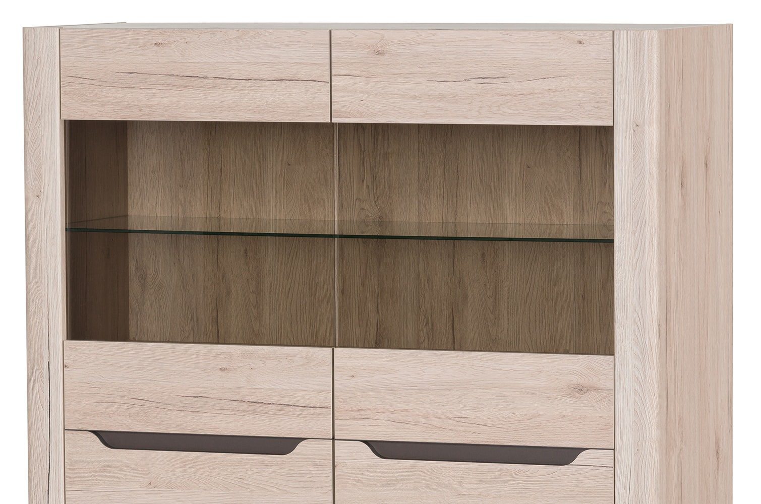 Βιτρίνα Olavo λιτού και μοντέρνου σχεδιασμού σε φυσικό χρώμα, με νερά στην επιφάνεια που τονίζουν την φυσική ομορφιά του επίπλου