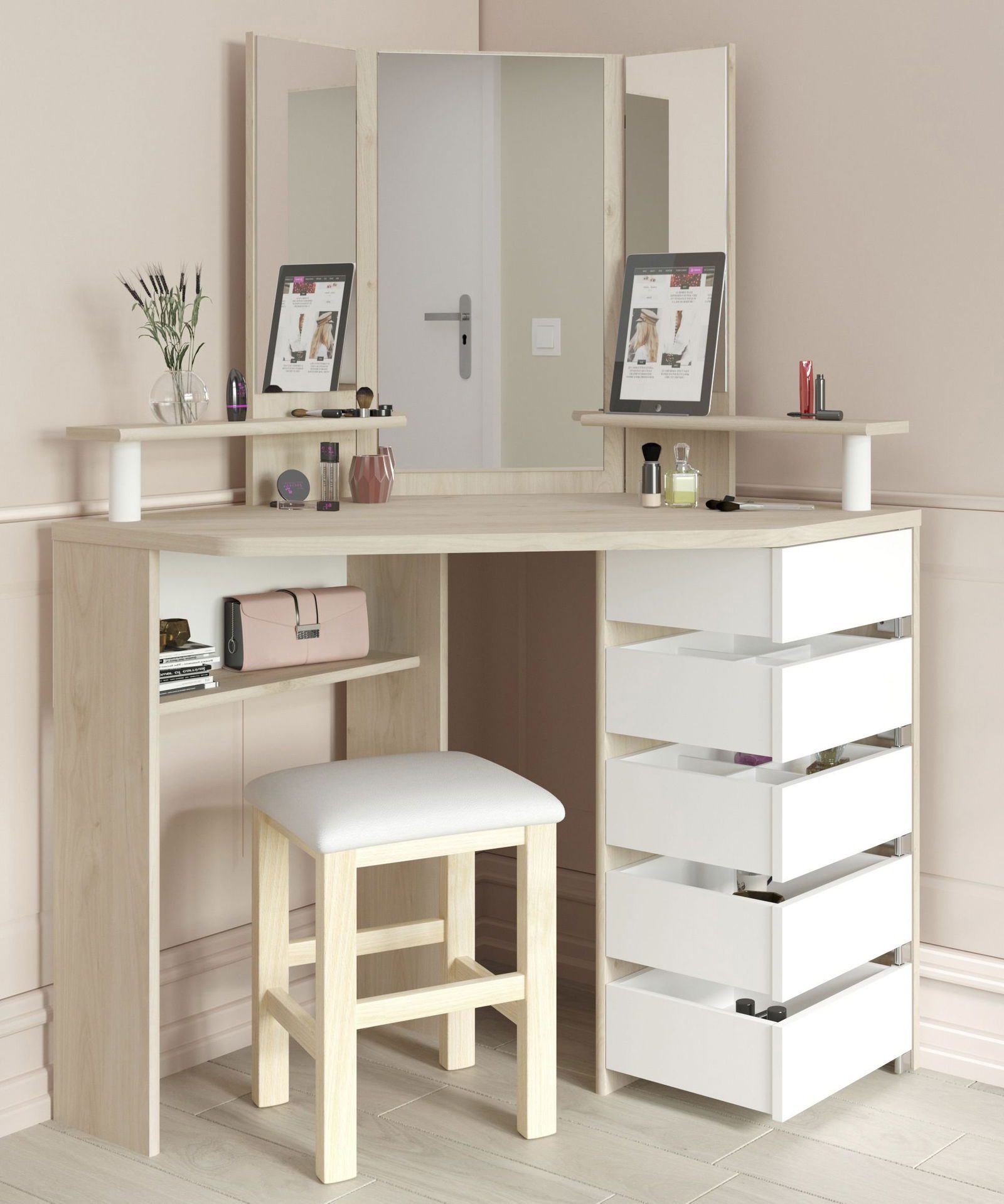 Η Γωνιακή Τουαλέτα Beauty με Καθρέπτη προσφέρει άνεση και ευελιξία.