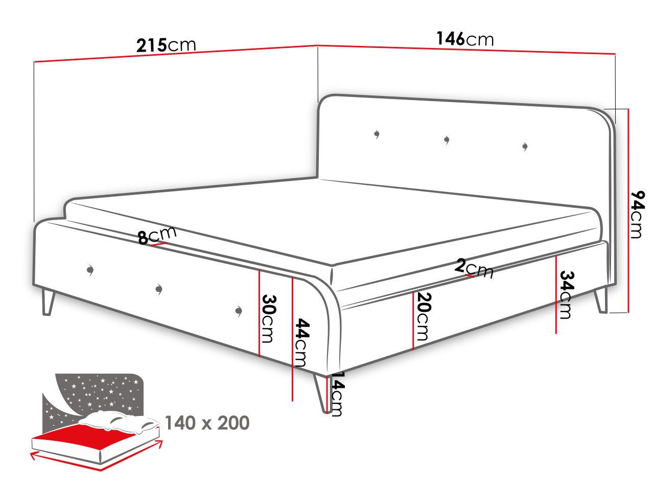 Επενδυμένο κρεβάτι Loham-Gkri-140 x 200