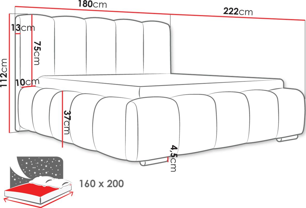 Επενδυμένο κρεβάτι Wizko-Anthraki-160 x 200