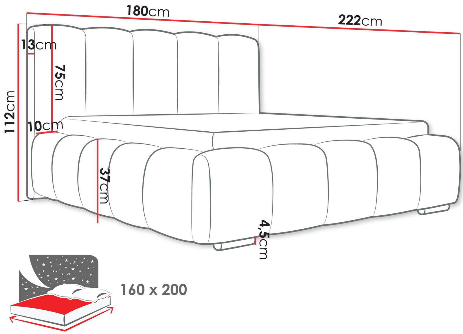 Επενδυμένο κρεβάτι Wizko-Mple Skouro-160 x 200