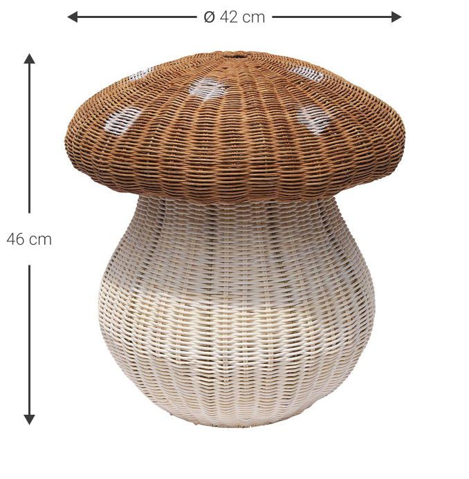 Το καλάθι αποθήκευσης Mushroom αποτελεί έναν ιδιαίτερο συνδυασμό πρακτικότητας και διακοσμητικής φαντασίας. Κατασκευασμένο από φυσικό rattan, ξεχωρίζει για τον πρωτότυπο σχεδιασμό και την χειροποίητη πλέξη του.