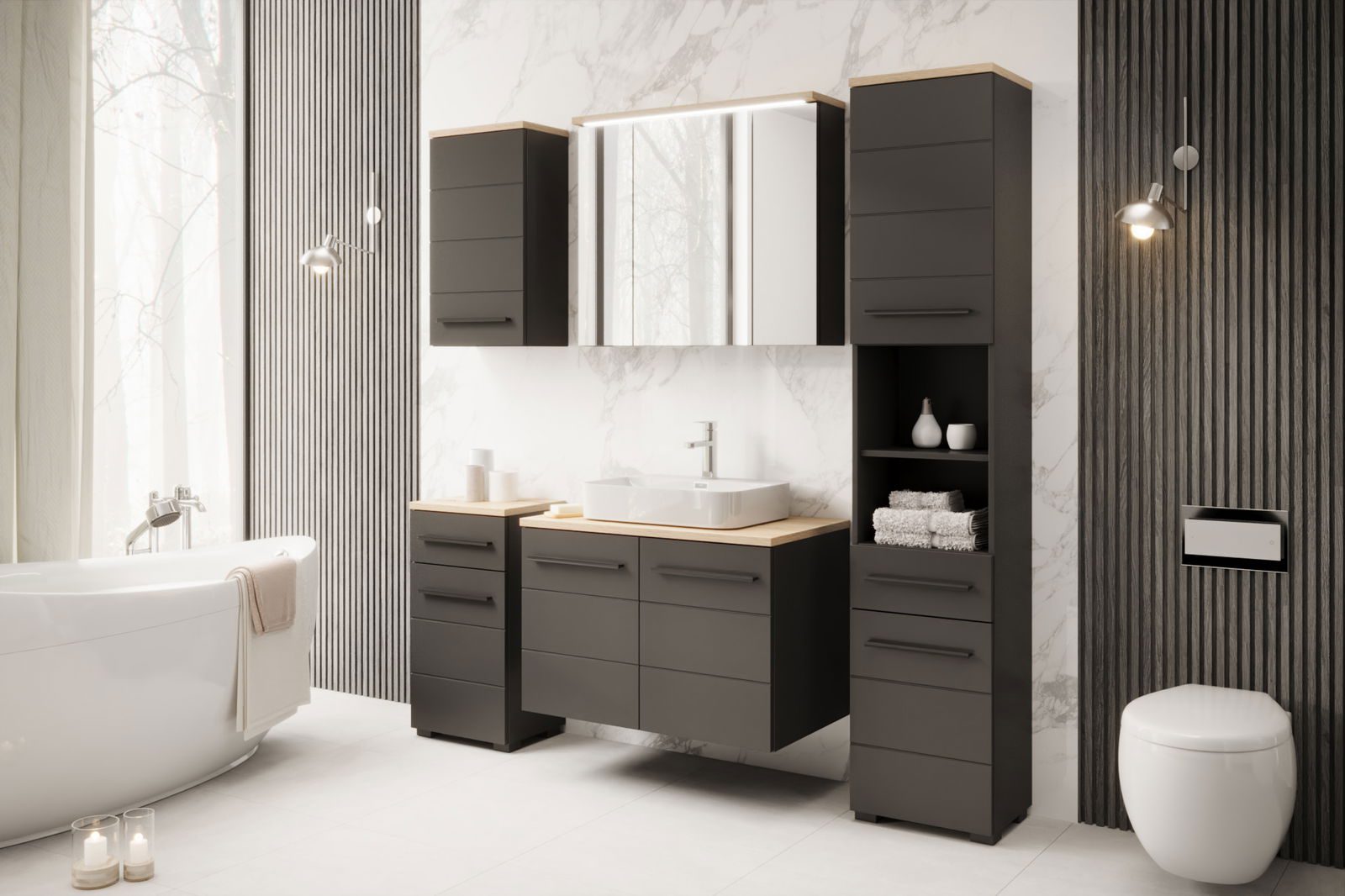 – Ανακλινόμενο καλάθι για τα άπλυτα ρούχα που καλύπτεται από το επάνω ράφι.