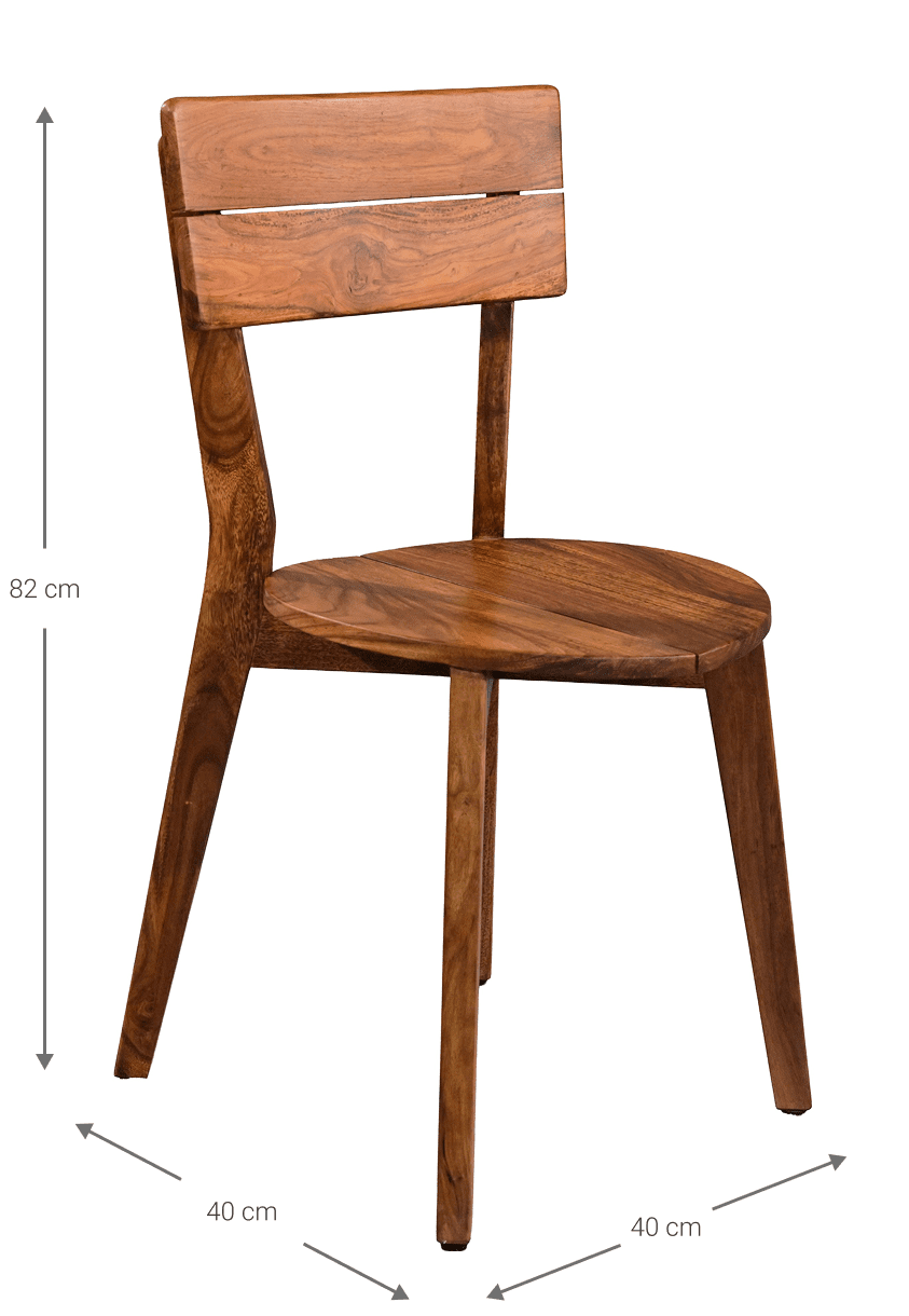 Η καρέκλα Cedrus διαθέτει απλή και στιβαρή γεωμετρία που συνδυάζεται με τη ζεστή, σκούρα απόχρωση του ξύλου sheesham. Ένα διαχρονικό κομμάτι με φυσική υφή και καθαρές γραμμές, ιδανικό για καθημερινή χρήση.