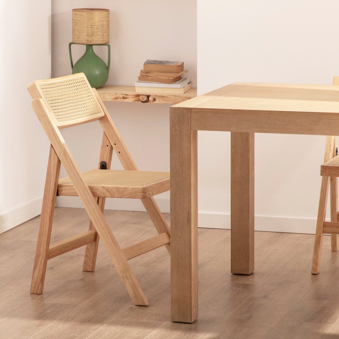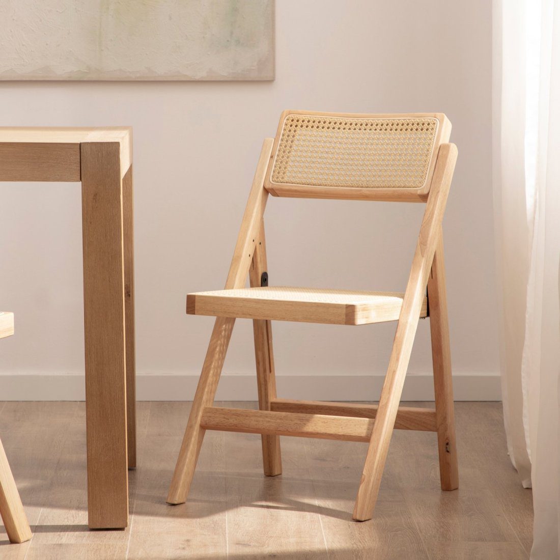 Καρέκλα Theodore Fold, με ξύλινο σκελετό και επένδυση από φυσικό rattan στο κάθισμα και στην πλάτη. Είναι μία πτυσσόμενη κατασκευή, κάτι που την καθιστά μία ιδιαίτερα πρακτική επιλογή για κάθε χώρο.