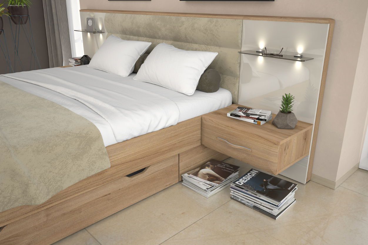 Το κομοδίνο Giallo 1D plus είνια η ιδανική λύση για να πλαισιώσετε το κρεβάτι Giallo, με φωτισμό LED και μοντέρνα διχρωμία φυσικού ξύλου και μπέζ.