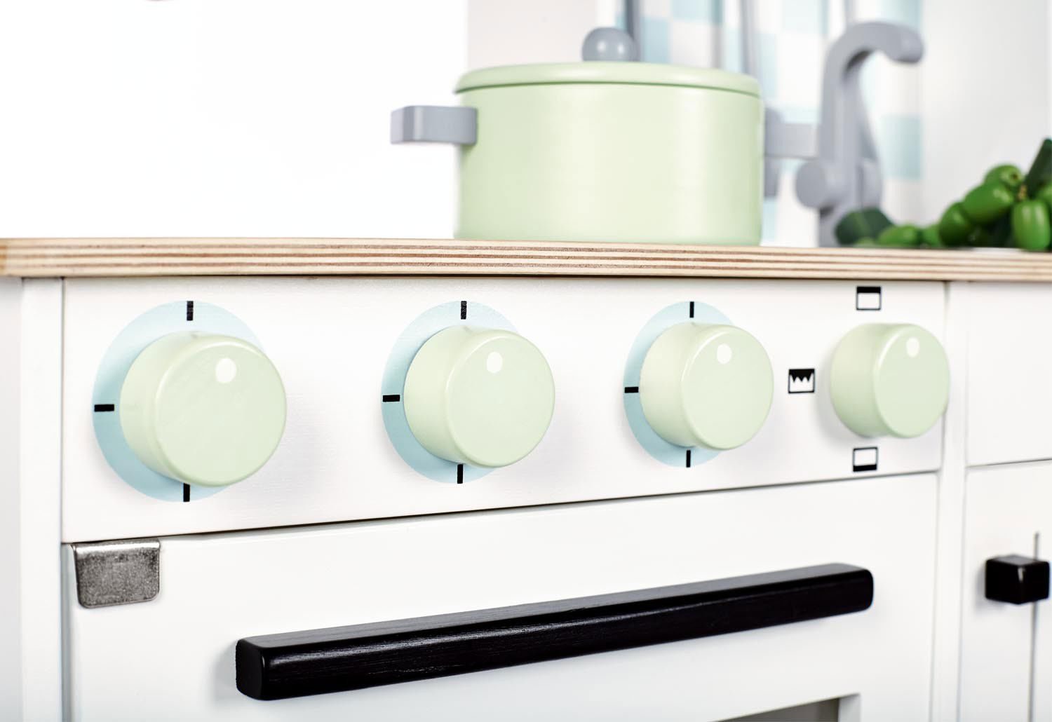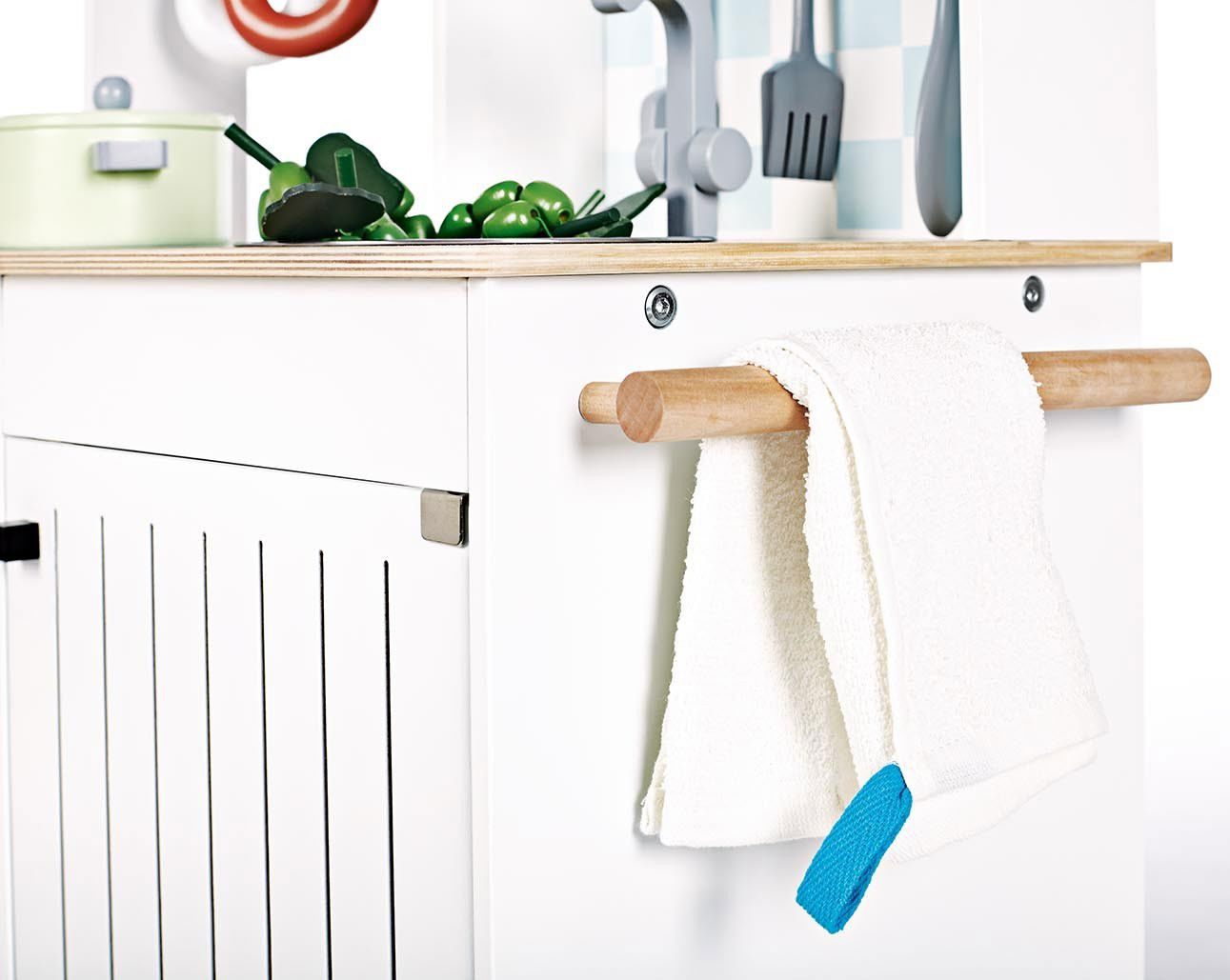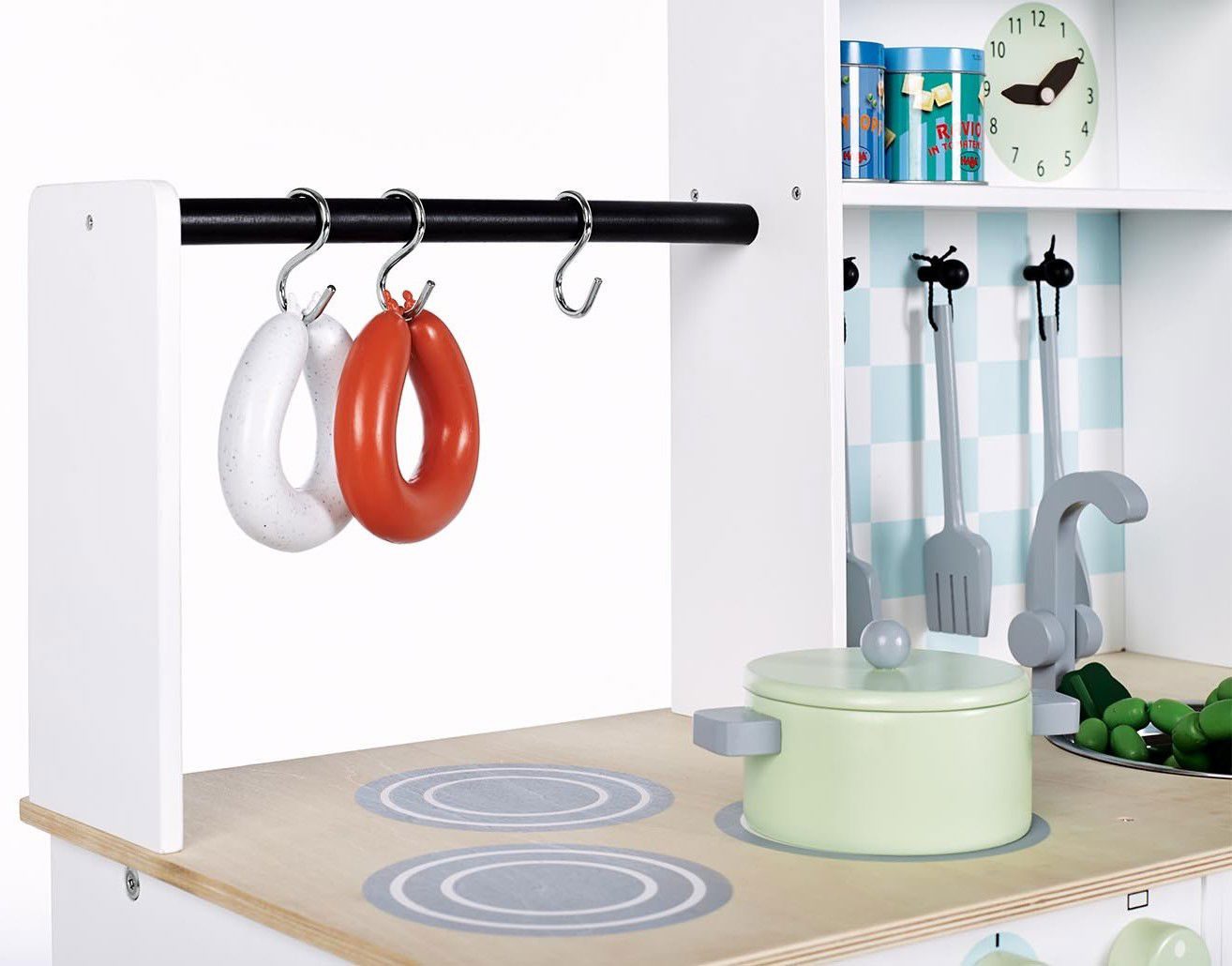 Κουζίνα Alfons, κλασικού σχεδιασμού με ροδάκια για εύκολη μετακίνηση, ιδανική για ατελείωτες ώρες ψυχαγωγίας παιχνιδιού μίμησης.
