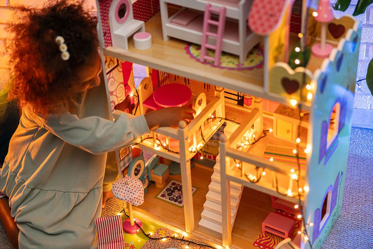 Το κουκλόσπιτο Joyland Sunshine θα βοηθήσει τα παιδιά σας να καλλιεργήσουν και να αναπτύξουν την δημιουργικότητά τους, χάρη στις αμέτρητες επιλογές διαρρύθμισης των χώρων με τα έπιπλα και αξεσουάρ που διαθέτει. Χωρίζεται σε 3 ορόφους, με πισίνα στην αυλή, μπάνιο, σαλόνι, τραπεζαρία, κουζίνα, υπνοδωμάτιο και μπαλκόνι.