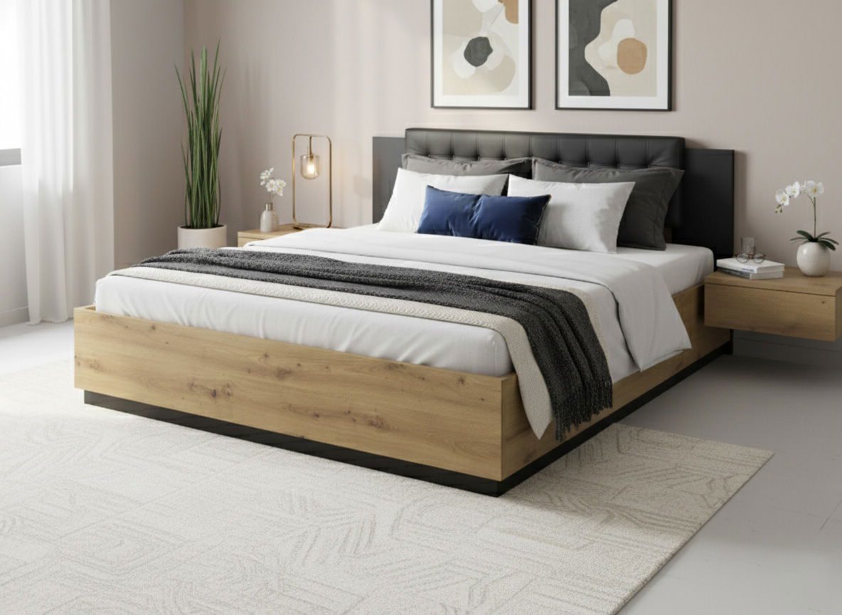 Κρεβάτι Sigon μοντέρνου σχεδιασμού που συνδυάζει αρμονικά την ξυλινη με την δερμάτινη επιφάνεια του. Διαθέτει αποθηκευτικό χώρο που αυξάνει την χρηστική του αξία και προτείνει την δυνατότητα χρήσης τελάρου με μηχανισμό ανύψωσης για ευκολη χρήση. Συνδυάστε το με τα υπόλοιπα έπιπλα της ίδιας σειράς για ενα ομοιόμορφο αποτέλεσμα.