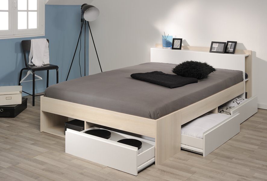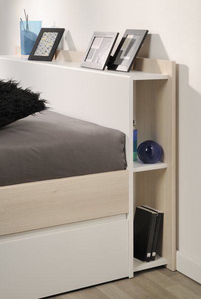 Κρεβάτι Tour σε μοντέρνο σχεδιασμό, με πλαϊνά συρτάρια που μπορούν να τοποθετηθούν είτε στην αριστερή, είτε στη δεξιά πλευρά του κρεβατιού.