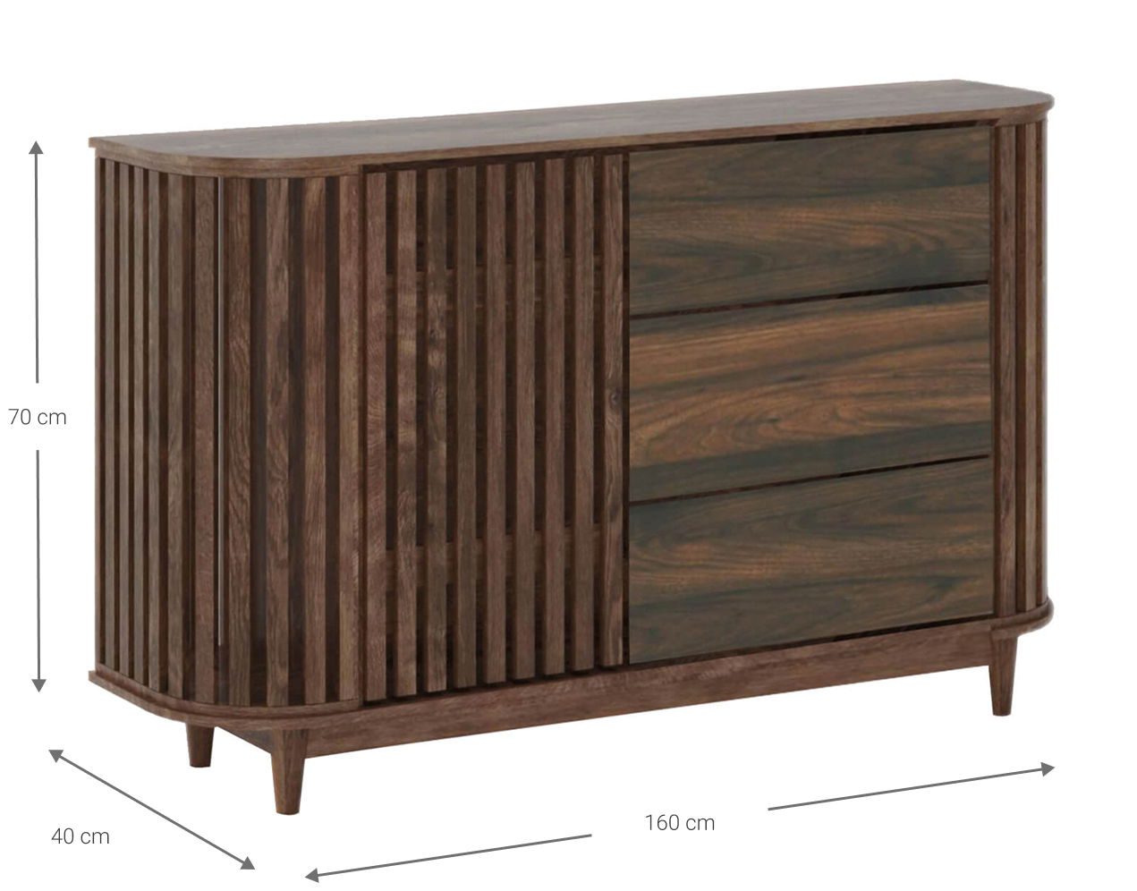 Ο μπουφές Fortrana συνδυάζει μοντέρνα αισθητική και πρακτικότητα, αποτελώντας ιδανική λύση για την οργάνωση και αποθήκευση στον χώρο σας. Διαθέτει τρία συρτάρια και ένα ντουλάπι με συρόμενη πόρτα, προσφέροντας άνετο χώρο για τακτοποίηση αντικειμένων και διατήρηση της τάξης.