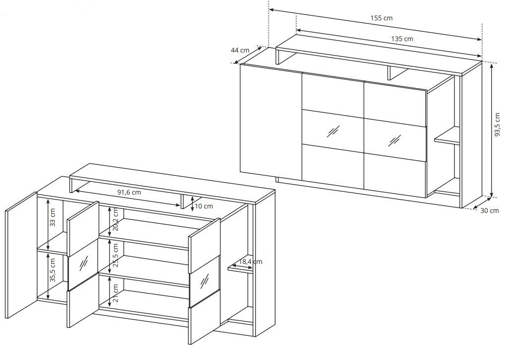 Προσθέστε στο σαλόνι σας αποθηκευτικό χώρο με στυλ, με τον μπουφέ της σειράς Oak. Διαθέτει στο αριστερό μέρος ένα ντουλάπι με ράφι εσωτερικά. Στη μέση υπάρχουν δύο γυάλινες πόρτες για την έκθεση διακοσμητικών ή υαλικών, με τρία ράφια στο εσωτερικό.