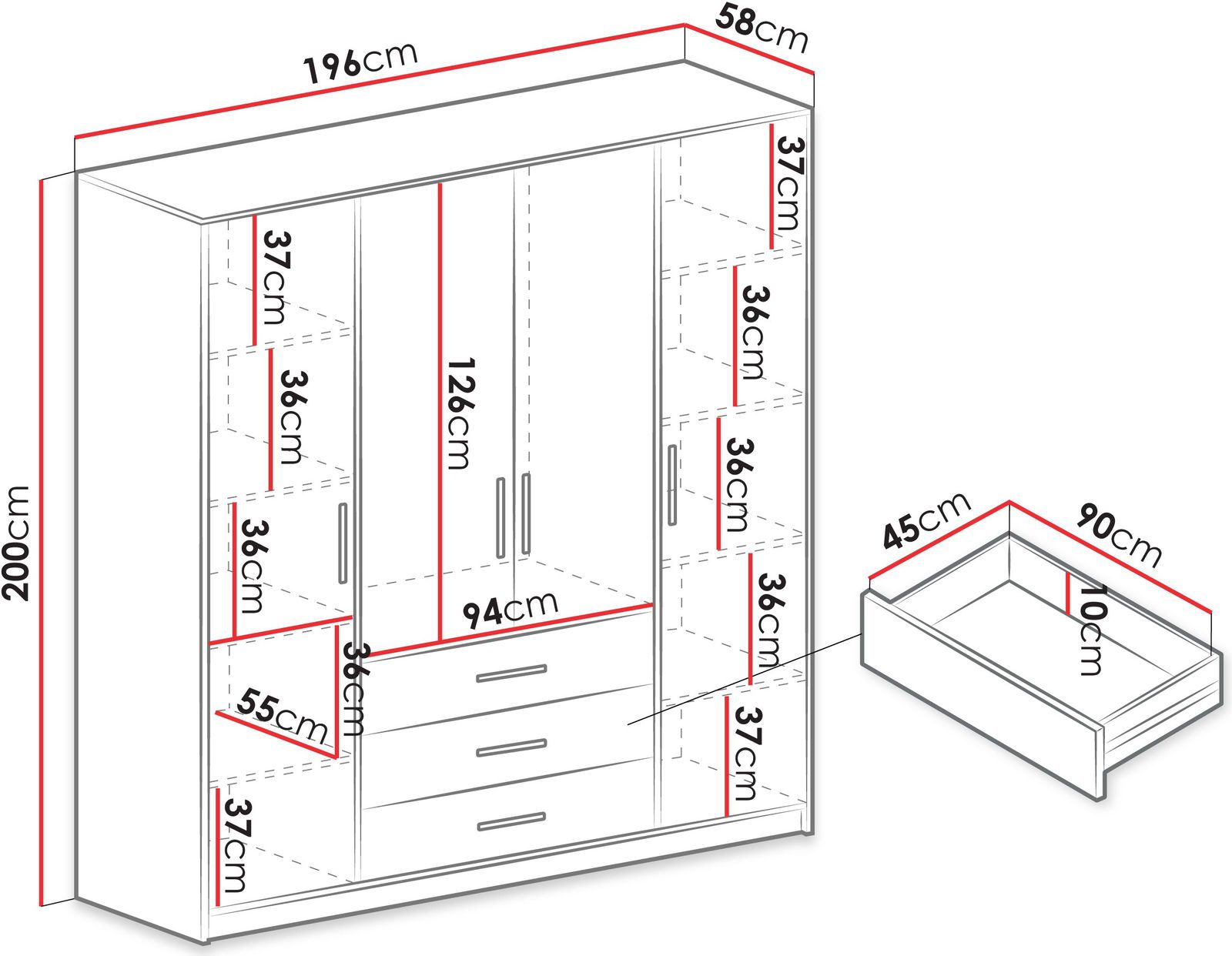 Ντουλάπα Bali 4D τετράφυλλη-Leuko