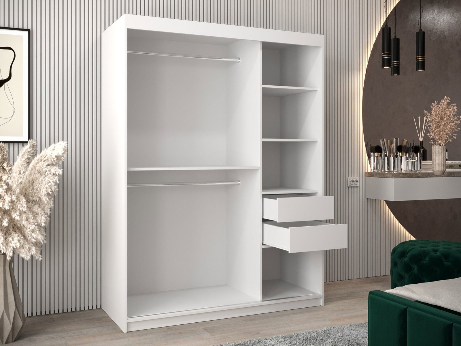 Ντουλάπα Flutes 150 Συρόμενη-Λευκό