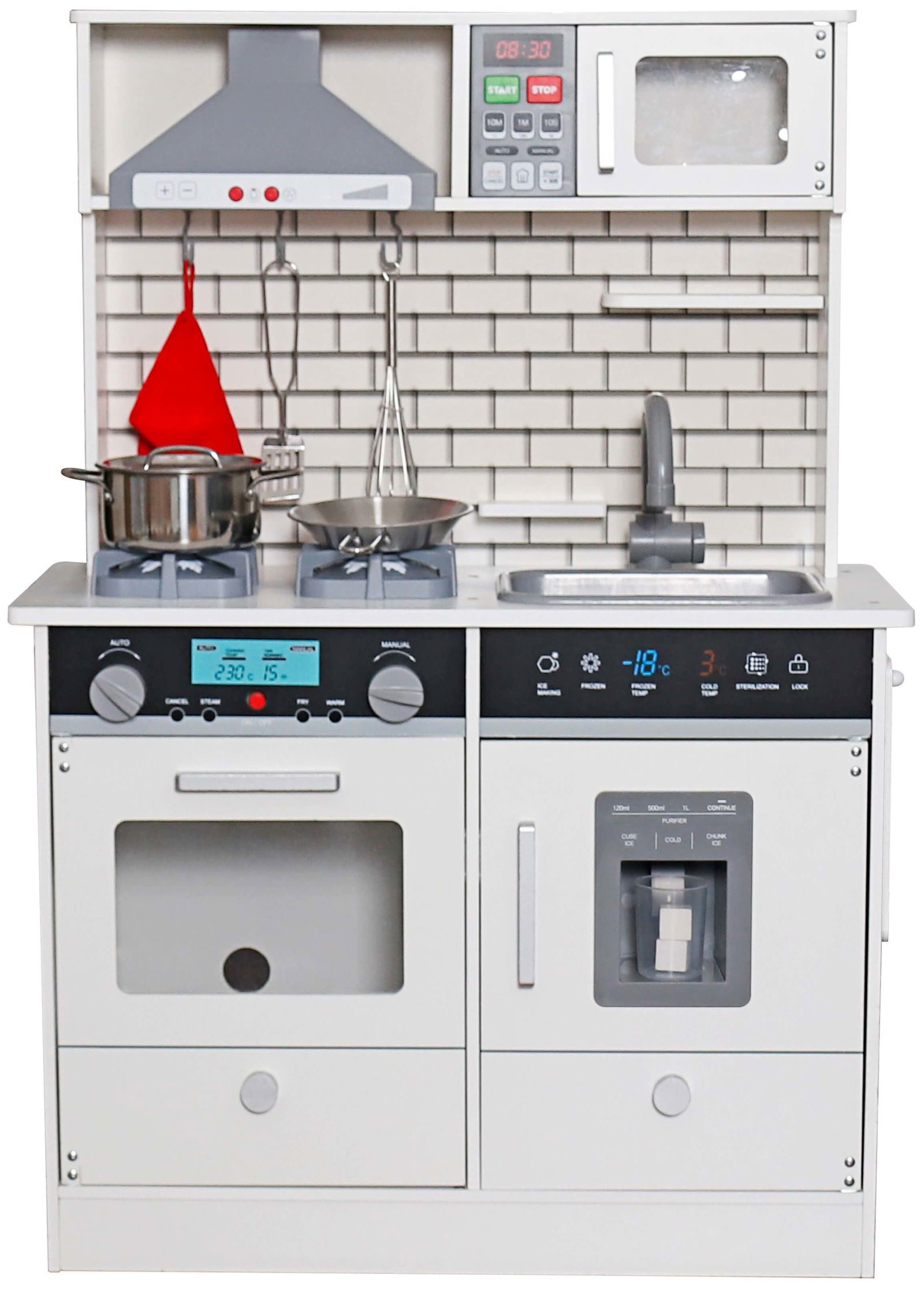 Η παιδική κουζίνα Joyland Modern θα βοηθήσει το παιδί σας να αναπτύξει τις δεξιότητες του και να μάθει τις βασικές έννοιες της μαγειρικής και της οργάνωσης, συνδυάζοντας εκμάθηση και ψυχαγωγία. Διαθέτει φούρνο με εστίες, ψυγείο, νεροχύτη, απορροφητήρα και φούρνο μικροκυμάτων καθώς επίσης και τα απαραίτητα μαγειρικά σκεύη. Ο φούρνος, ο απορροφητήρας, ο φούρνος μικροκυμάτων και οι εστίες διαθέτουν ηχητικά εφέ και εφέ φωτισμού.