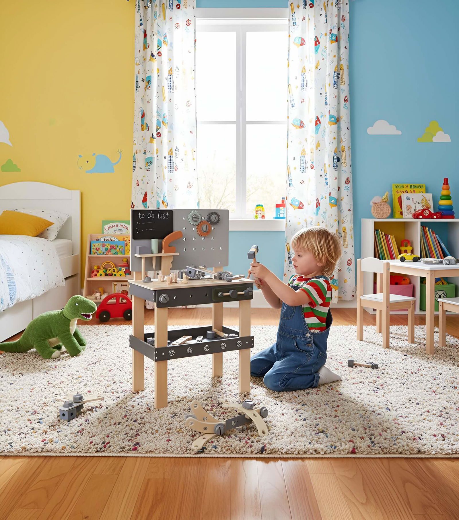 Ο παιδικός πάγκος εργασίας Joyland Rucky προσφέρει έναν πλήρως εξοπλισμένο χώρο δημιουργίας για κάθε μικρό τεχνίτη. Με κατσαβίδι, γρανάζια, σφυρί, γωνιόμετρο και μαυροπίνακα κιμωλίας, προσκαλεί το παιδί σε ατελείωτες ώρες παιχνιδιού, καλλιεργώντας τη λογική σκέψη, τη λεπτή κινητικότητα και τη δημιουργικότητα. Η ανθεκτική κατασκευή και ο λειτουργικός σχεδιασμός με πρακτικούς αποθηκευτικούς χώρους προσφέρουν άνεση και ευκολία σε κάθε στιγμή του παιχνιδιού.