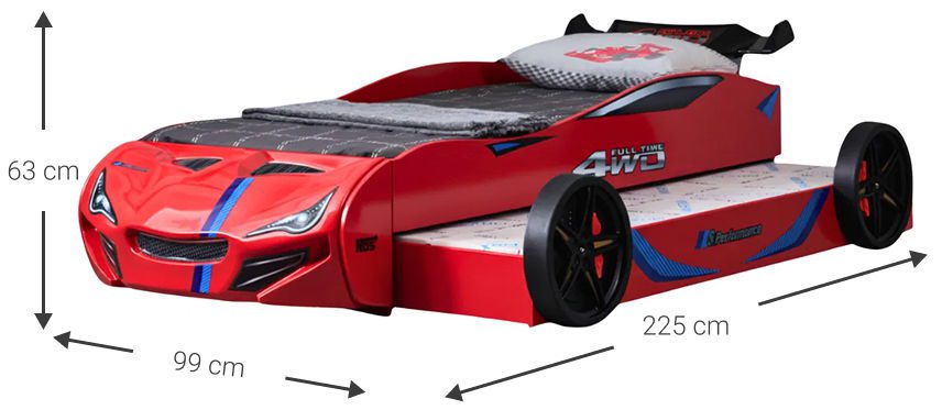 Παιδικό Κρεβάτι Turbo GT Duo-Κόκκινο