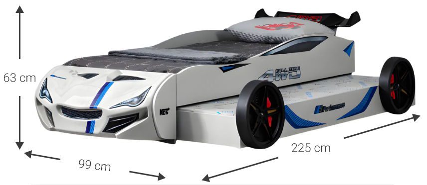 Παιδικό Κρεβάτι Turbo GT Duo-Λευκό