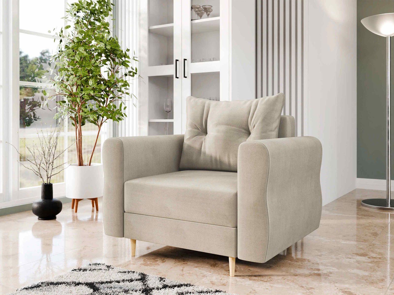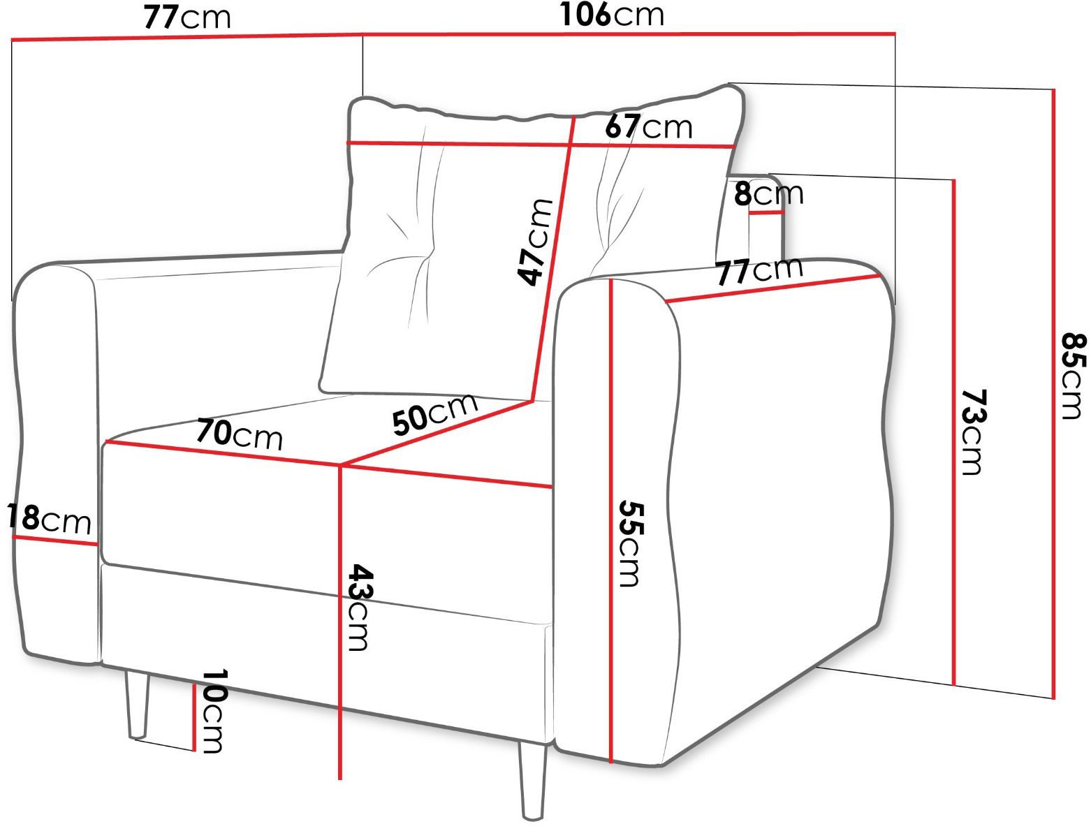 – Η πολυθρόνα στέκεται μόνη της (η πλάτη είναι καλυμμένη με ύφασμα).