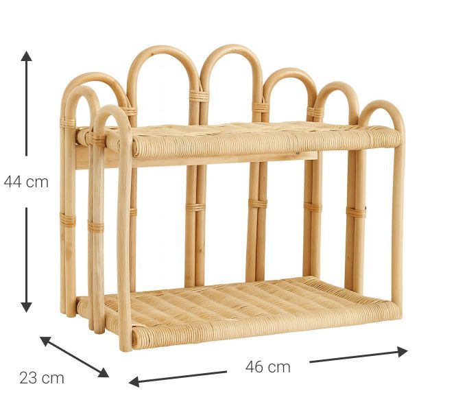 Το ράφι Onyxia, κατασκευασμένο από φυσικό καλάμι ράτταν, συνδυάζει πρακτικότητα με κομψό σχεδιασμό, ιδανικό για οργάνωση και διακόσμηση του χώρου σας.