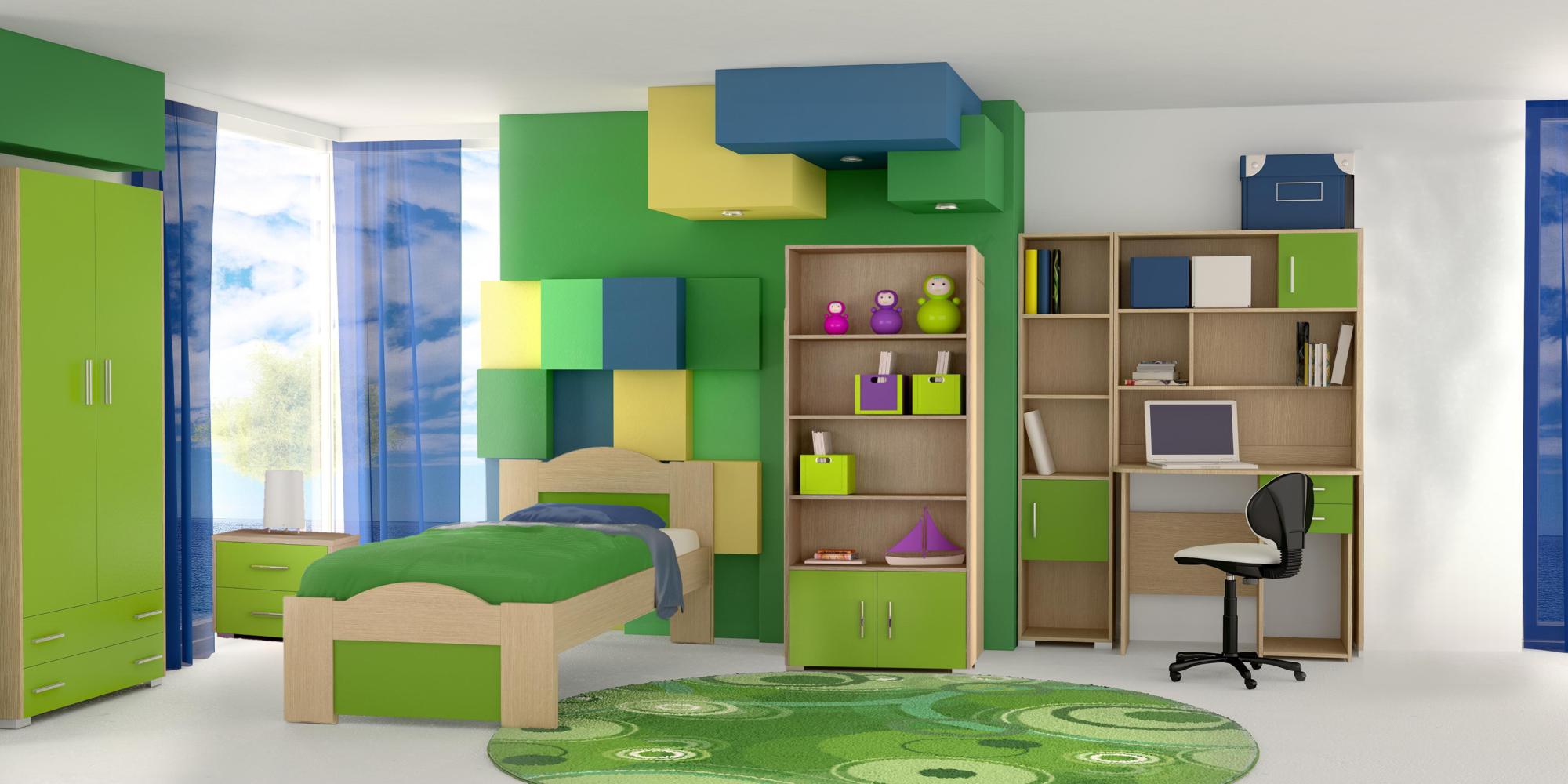 Σετ παιδικό δωμάτιο “Κύμα” δρυς-λαχανί