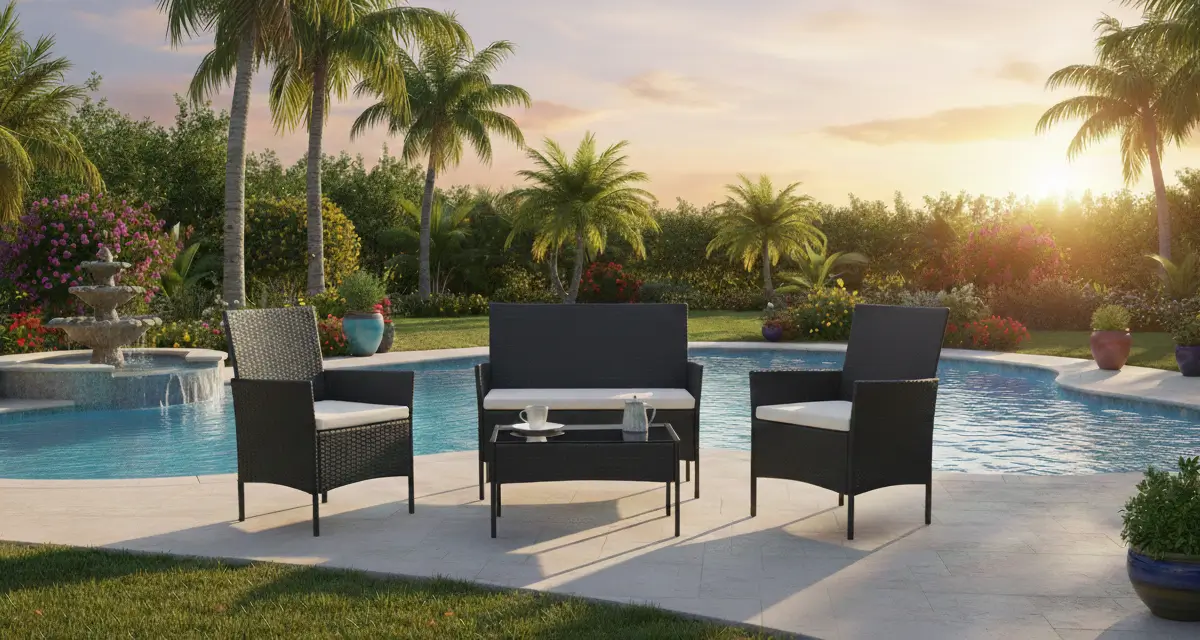 Tempered glass 5mm σε μαύρο χρώμα / Συνθετικό Rattan