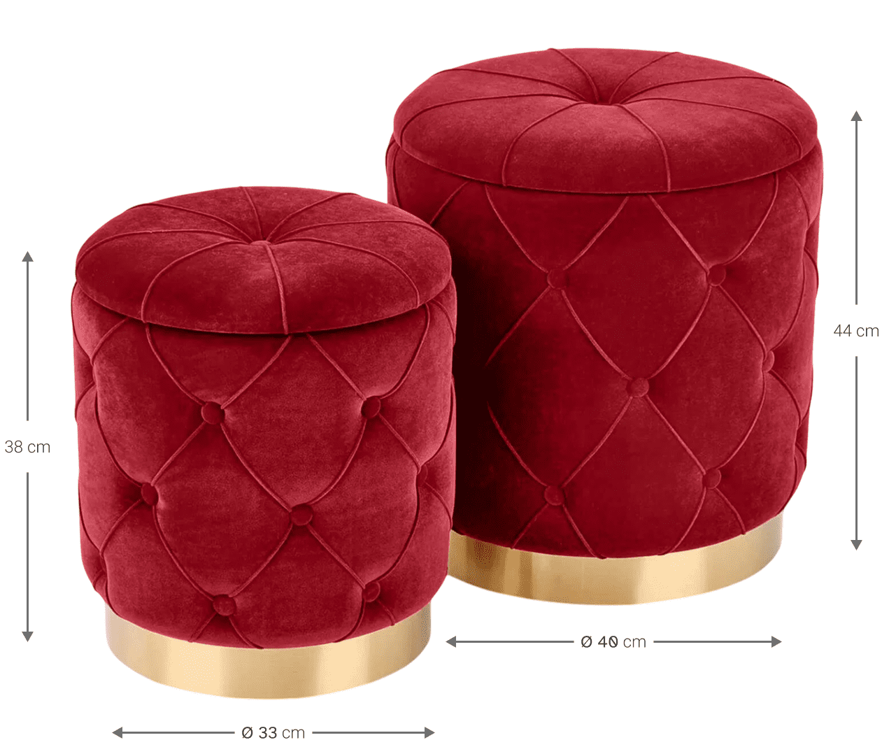 Τα σετ σκαμπό Button, θα ανανεώσουν την αισθητική του σαλονιού σας, με έντονες αποχρώσεις, ύφασμα βελούδινης υφής με καπιτονέ σχέδιο και πρακτικό αποθηκευτικό χώρο κάτω από το κάθισμα.