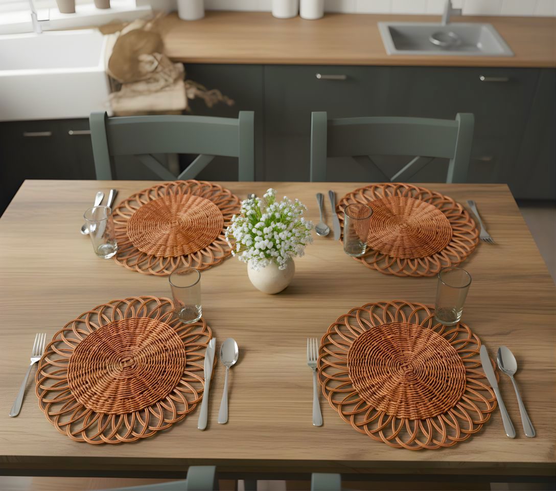 Το σουπλά Atom είναι κατασκευασμένο από ράτταν και ξεχωρίζει για την ιδιαίτερη πλέξη του, προσφέροντας μοναδική υφή και φυσική αισθητική στο τραπέζι σας.