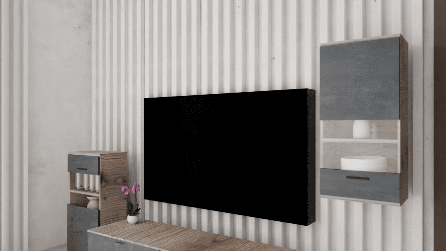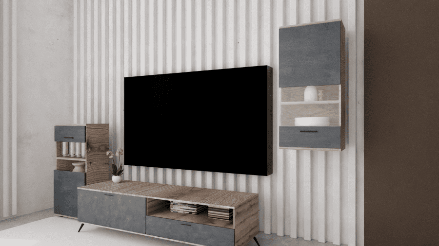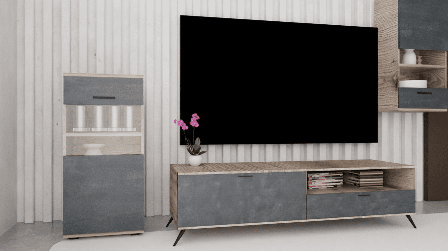 Κατασκευασμένη από ελληνική μελαμίνη, υψηλής ποιότητας, η σύνθεση εξασφαλίζει αντοχή στη χρήση και στον χρόνο, προσφέροντας ένα εντυπωσιακό και μοντέρνο αισθητικό αποτέλεσμα ιδανικό για κάθε σύγχρονο σαλόνι.