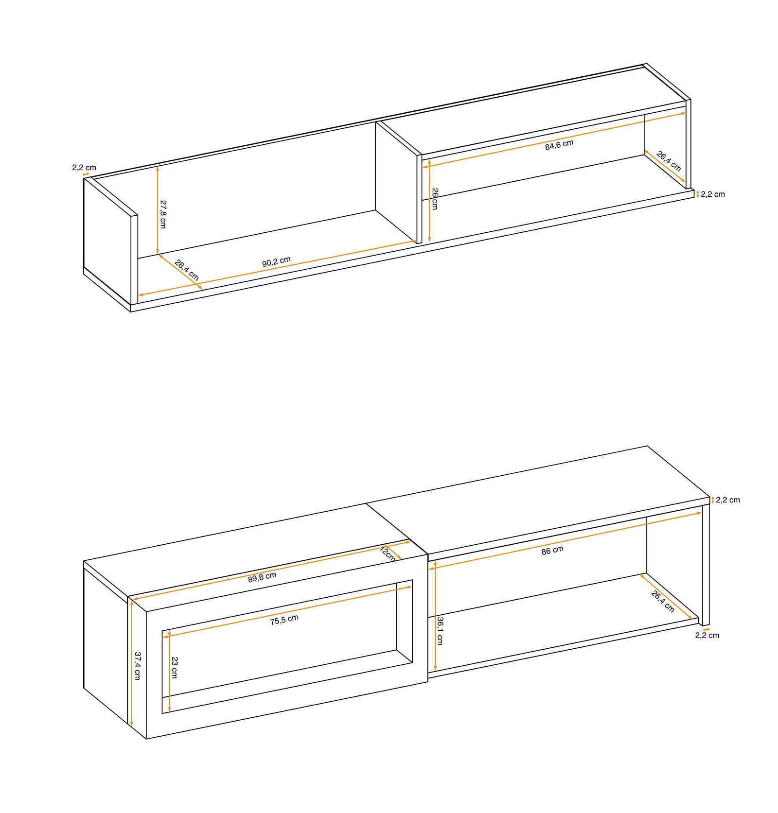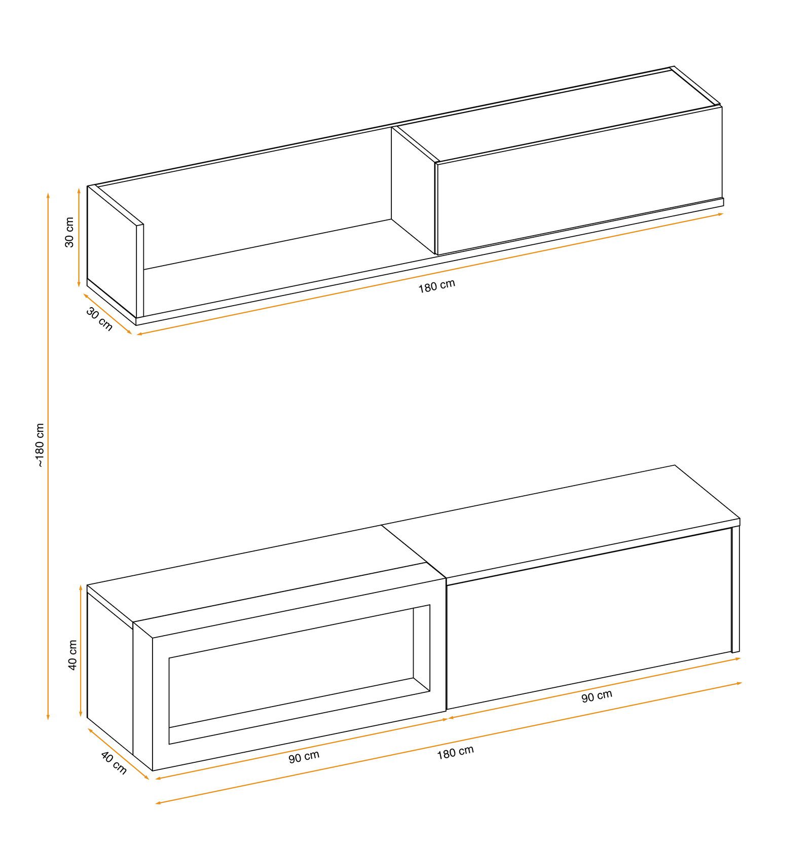 Σύνθετο σαλονιού Reymond μίνιμαλ σχεδιασμού με μοντέρνα διχρωμία και αποθηκευτικούς χώρους.