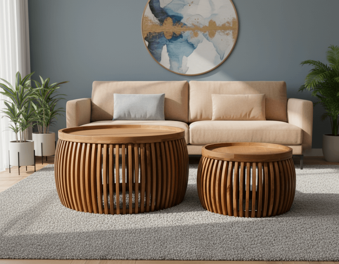 Το σετ τραπεζιών σαλονιού Elowen αποτελείται από δύο κομψά κομμάτια με διαχρονικό χαρακτήρα. Κατασκευασμένα από μασίφ ξύλο mango και φινίρισμα walnut, προσφέρουν φυσική υφή και ζεστή αίσθηση στον χώρο.