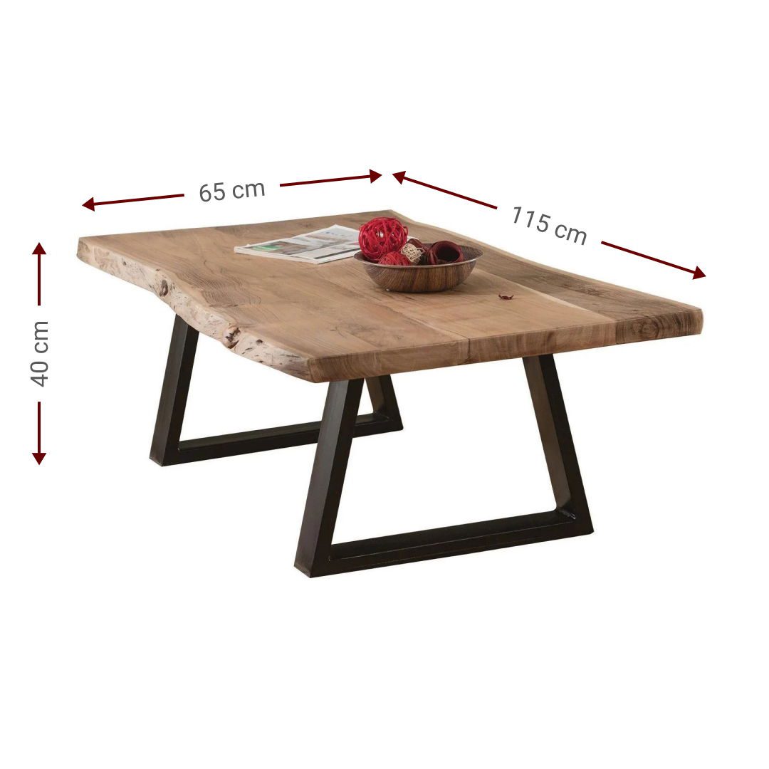 Τραπεζάκι σαλονιού Rama, σε γήινες αποχρώσεις με επιφάνεια φυσικού ξύλου και μαύρα ποδαρικά.