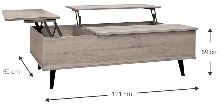 Το τραπεζάκι σαλονιού Sterling συνδυάζει μοντέρνο design με πρακτικότητα, προσφέροντας 3 ανακλινόμενες επιφάνειες και άφθονο αποθηκευτικό χώρο κάτω από αυτές.