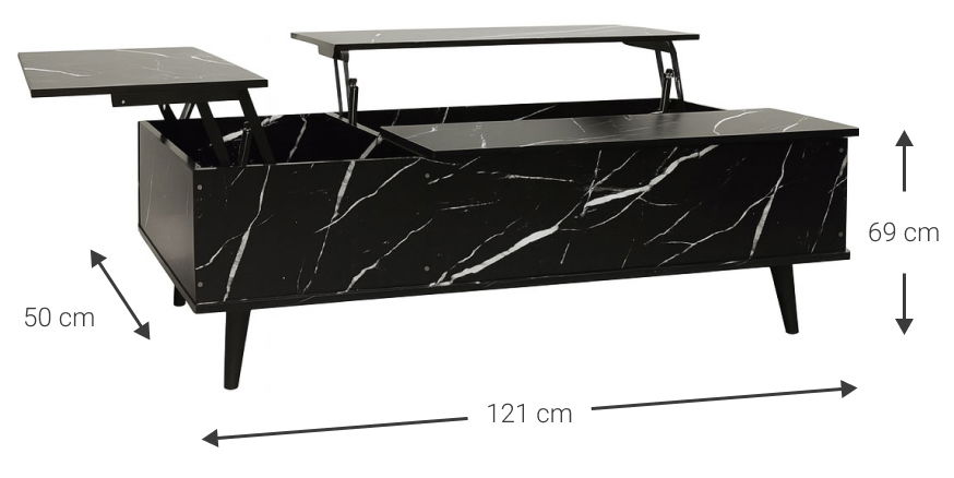 Το τραπεζάκι σαλονιού Sterling συνδυάζει μοντέρνο design με πρακτικότητα, προσφέροντας 3 ανακλινόμενες επιφάνειες και άφθονο αποθηκευτικό χώρο κάτω από αυτές.
