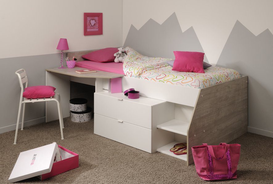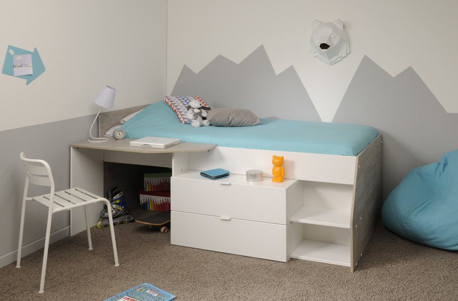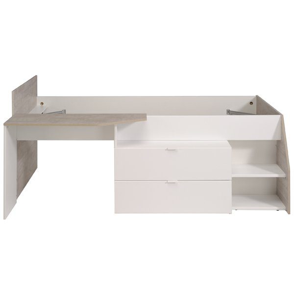 Χαμηλή Κουκέτα Latte με 2 συρτάρια και γραφείο στο πλάι